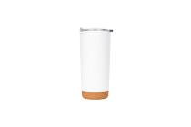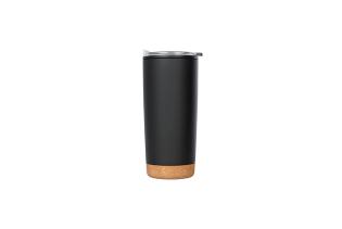 Vaso térmico, acero inoxidable con base de corcho natural, doble pared aislante, mantiene bebidas calientes hasta 6 h y frías hasta 12 h, capacidad 600 ml, tapa plástica transparente con deslizador, 18 cm de alto x 8 cm de diámetro, reutilizable y libre de BPA.